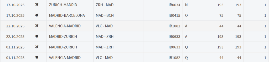 - 2 Flüge: Valencia (VLC) – Madrid (MAD) – Zürich (ZRH)