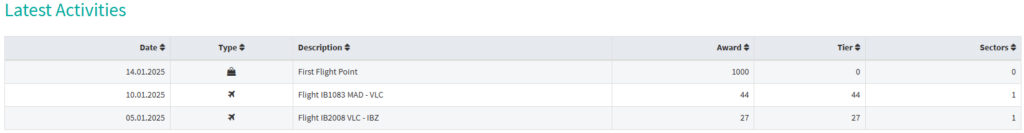 Auch Tage nach den ersten Flügen des zweiten Status Runs, passiert noch nichts. Bis irgendwann ein Flug im Royal Club Konto aufpoppte. Nicht einer aus Dezember 2024, sondern der erste Flug aus diesem Status Run. Obwohl die Buchung aus vier Flügen bestand (alle auf einem Ticket) wurde nur ein Leg von Valencia nach Ibiza gutgeschrieben (27 Meilen :-)). Nur wenig später bemerkte ich, dass plötzlich drei Flüge in meinem Qatar Airways Privilege Club Account gutgeschrieben wurden. Es rächte sich also, dass ich zunächst meinen Oneworld Sapphire in der Buchung hinterlegt hatte, um mir kostenfreie Sitzplätze zu reservieren. Am meisten irritierte mich, dass ich ausgerechnet bei dieser Buchung durch den X Kundenservice von Iberia die Vielfliegernummer auf Royal Jordanian habe ändern lassen. In einer stundenlangen Diskussion, da der Mitarbeiter nicht einmal min Anliegen verstand. Da hatte ich also wieder einmal Lehrgeld bezahlen müssen.