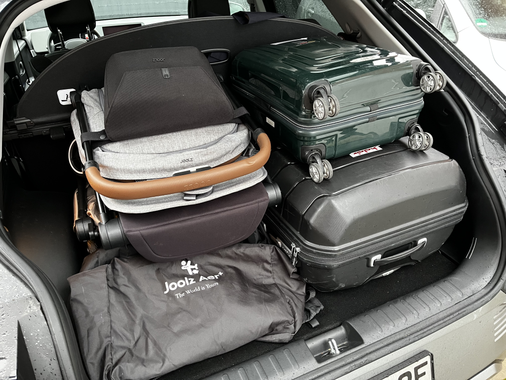 Bei der Mietwagenübernahme hätten wir ohne die Joolz AER+ ein Problem gehabt. Zwar hatten wir einen BMW X1 angemietet, aber der reichte mit unserem Gepäck gerade mal so. Mit unseren Kinderwagen von früheren Reisen hätte das niemals gepasst.