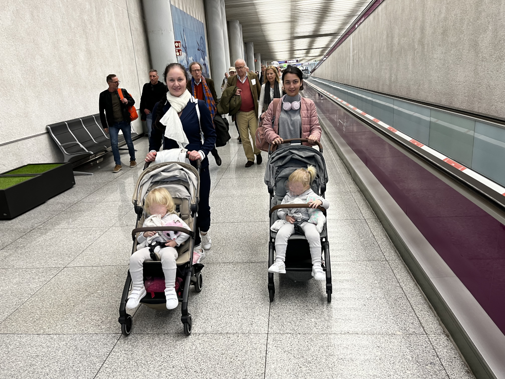 Schon die Sicherheitskontrolle war mit den AER+ so entspannt wie nie. Zwar sind die Kinder mittlerweile sicherer zu Fuß unterwegs als bei früheren Reisen, aber der Aspekt nur einen Knopf zu drücken und den Kinderwagen dann mit einer Hand in eine der Boxen für den Sicherheiitsscanner zu befördern, ist schon ziemlich angenehm.