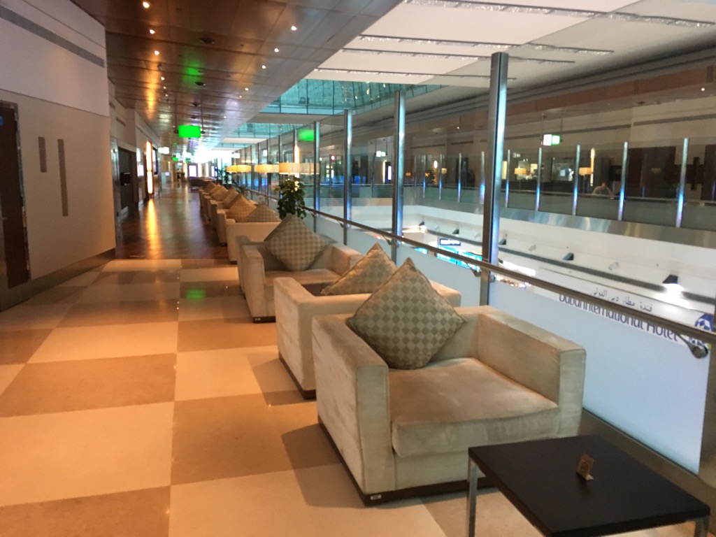 Emirates betreibt in Dubai mehrere riesige First Class Lounges. Auch wenn diese teilweise etwas ausgestorben und hierdurch kahl wirken, bietet man den Gästen wirklich viel. Von á la carte Restaurants, über Spielzimmer, großen Bars, Duschen, Ruheräumen, Raucherlounges und eigenen Duty Free Shops, gibt es hier fast keinen Grund die Lounge zu verlassen.