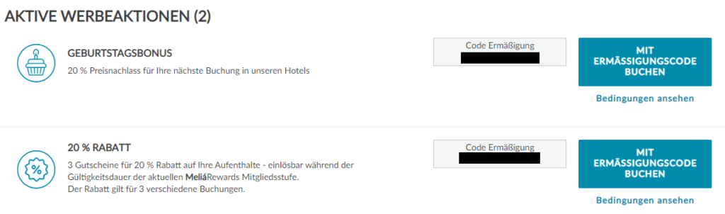 Mit Melia Rewards gönnt man sich vermutlich das schlechteste Hotel-Bonusprogramm der Welt. Selbst der IHG Rewards Club ist dagegen ein Füllhorn von Status-Vorteilen. Doch an einer Stelle macht das Programm Spaß: Mitglieder erhalten in der Regel jährlich zum Geburtstag 20% Rabattvoucher. Diese Gutschein-Codes können mit der „Wonder Weeks“-Aktion kombiniert werden und drücken den Preis noch mal etwas. Zusätzlich erhaltet Ihr bei Buchung über die App nochmals 5% Discount. Falls Ihr Euch also irgendwann mal die American Express Platinum Kreditkarte zugelegt habt, habt Ihr Euch vielleicht auch bei Melia Rewards angemeldet. Denn Melia Rewards verleiht Amex Platinum Kunden direkt die Goldmitgliedschaft. Dann schaut sicherheitshalber in Eurem Kundenkonto vorbei, ob dort noch ein Rabattcode gültig ist.
