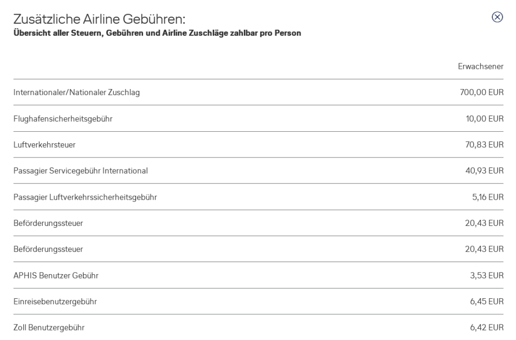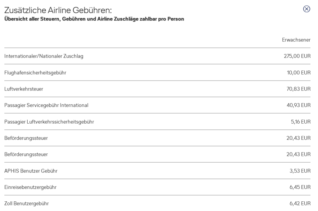 Flugpreis + 2x Flugpreis (genannt Steuern und Gebühren) = zu zahlender Endpreis