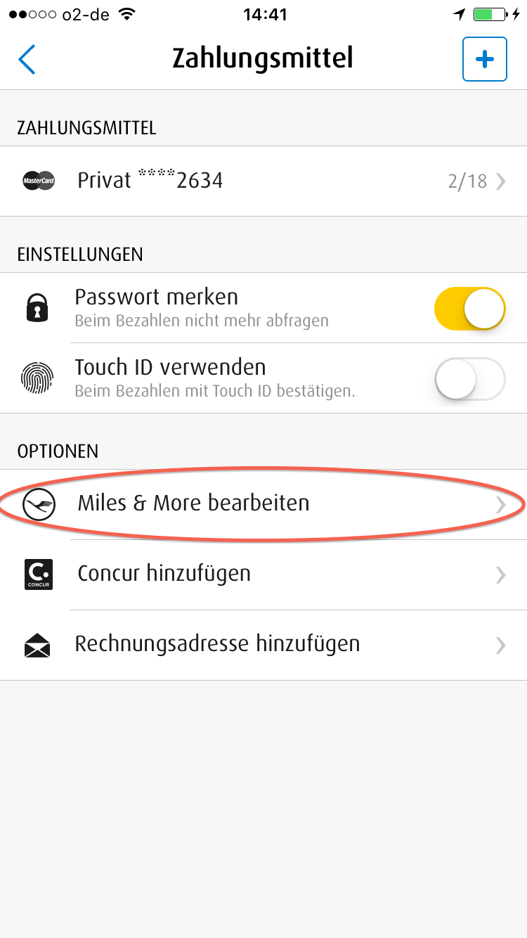 Und dort auf Miles & More Nummer bearbeiten. Hier könnt Ihr einfach Eure Miles and More Nummer eintragen und erhaltet anschließend für jede Fahrt Prämienmeilen.