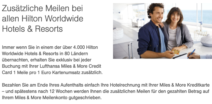 Inhaber der M&M Kreditkarte erhalten bei jedem Einsatz in einem der zahlreichen Hotels zusätzliche Meilen. Bei der privaten Variante sind dies immerhin 3 Meilen für jeweils 2€ Umsatz für die Übernachtung und alle weiteren im Hotel getätigten Ausgaben wie Restaurantbesuche oder Spa-Anwendungen. Berücksichtigt werden alle Umsätze, die direkt in einem der Häuser getätigt wurden.