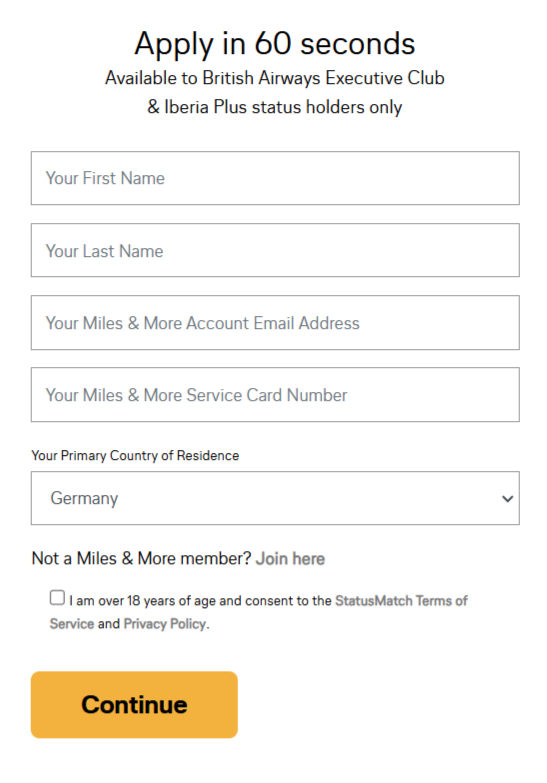 Ein Status Match zum Frequent Traveller oder Senator bei Miles & More, das war früher die absolute Ausnahme. In letzter Zeit durften wir uns jedoch mehrfach Angeboten erfreuen, von einem anderen Vielfliegerprogramm zu Miles & More umzusteigen, ohne alle Benefits zu verlieren. Nun geht der Miles & More Status Match in eine neue Runde und wendet sich konkret an Elite Mitglieder vom British Airways Club und Iberia Club. Alle Details zum Status Match bis zum Star Alliance Gold, haben wir Euch in diesem Beitrag zusammengefasst.