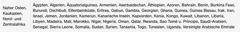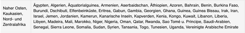 Sowie die Länder der Zone Naher Osten, Kaukasien, Nord- und Zentralafrika: