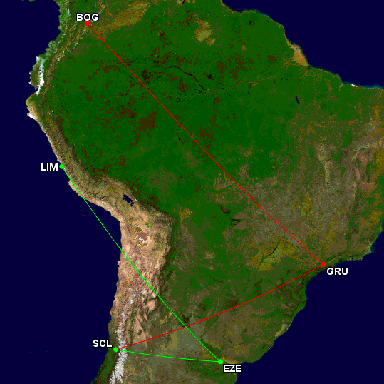 Eine andere Option wäre FRA-GRU mit LH und dann GRU-SCL mit Avianca Brasil (A330).