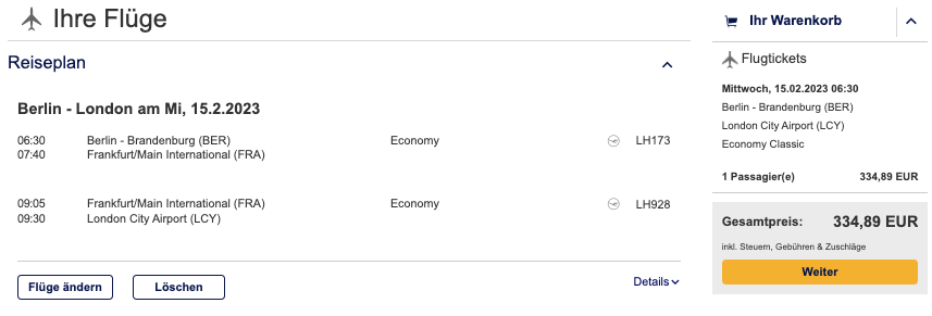 Vielleicht wart Ihr selbst schon in der Situation, spontan einen Flug buchen zu müssen und seid von dem Tarif erschrocken. Oft ist gleichzeitig noch eine Verfügbarkeit als Prämienflug gegeben. Hier ein Beispiel für einen oneway-Trip von Berlin nach London für den nächsten Tag: