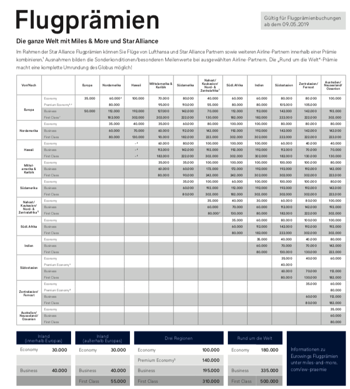 Wir haben uns die neue Meilentabelle schon angeschaut und die neuen Werte werden für Buchungen ab dem 9.Mai 2019 gelten. Davor könnt Ihr Eure Miles&More Meilen noch zum alten, aktuellen Meilenwert einlösen.