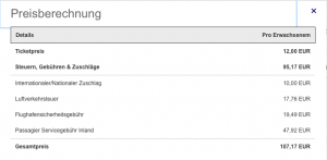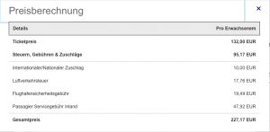 - Flugpreis: Light: 167,17Euro; Classic: 207,17 Euro, Flex: 287,17 Euro
