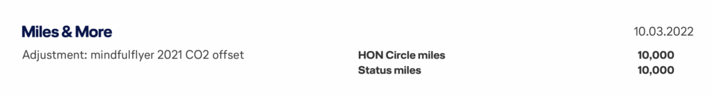 Eine der drei Aktionen war die Möglichkeit Statusmeilen zu sammeln, indem man Flügen aus 2021 über die Miles&More App kompensiert hat. Hierbei konnte man pro Flug, bei dem man für den CO2 Ausgleich bezahlt hat, 2.000 Status- und Hon Circle Meilen sammeln. Insgesamt konnte man für bis zu fünf Flüge extra Meilen bekommen und damit also 10.000 Statusmeilen einsammeln.