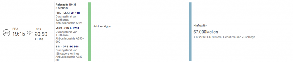 Auch habe ich keine Verbindungen mehr ab Europa in die USA über Asien gefunden. Diese wurden allerdings auch mit der Miles&More Online- Buchungsfunktion als 3- Zonen Award bepreist und waren daher nur bedingt sinnvoll. Wer möchte, kann solche Flüge aber weiterhin per Telefon für mehr Prämienmeilen buchen.