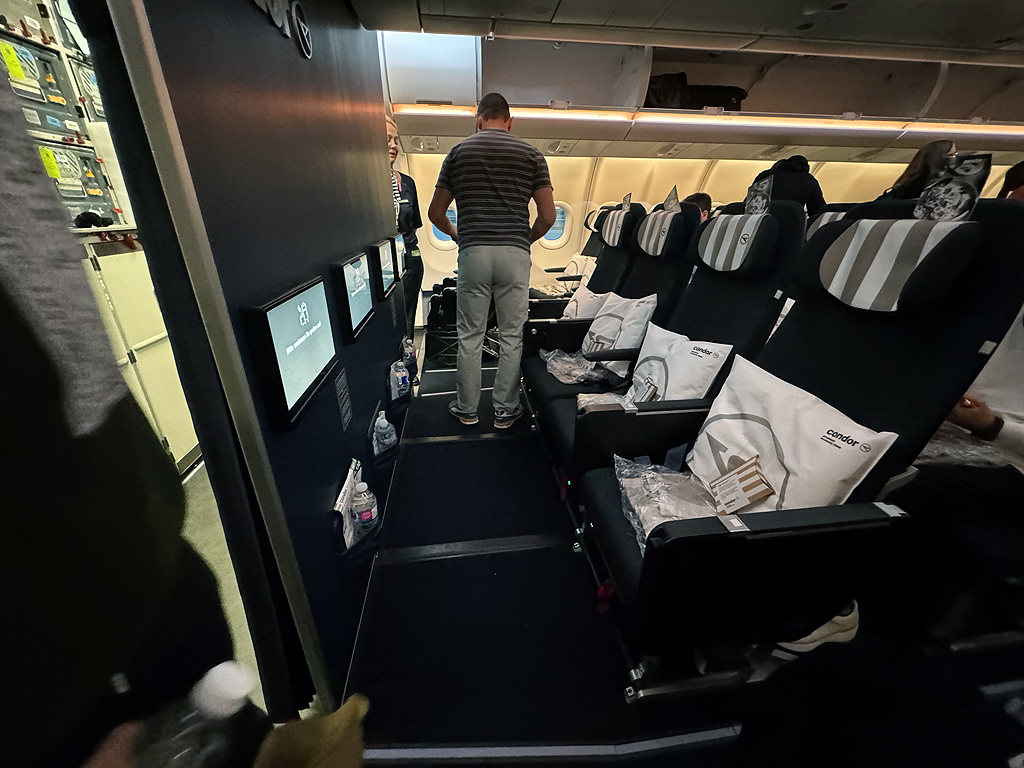 Trotz des günstigen Preises erwartet Euch an Bord der ganz normale Condor Service, wie man ihn von seinem Flug in den Urlaub vielleicht kennt. Auf der Langstrecke habt Ihr hier auch ein eigenes Entertainment System und bekommt kostenlose warme Mahlzeiten, sowie alkoholfreie Getränke.