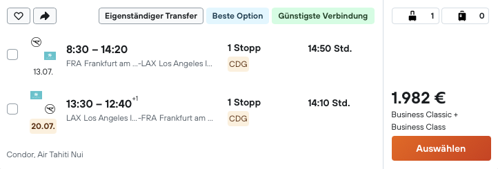Mit Condor und Air Tahiti Nui in der Business Class nach Los Angeles ab 1.982 Euro | Frankfurtflyer Kommentar