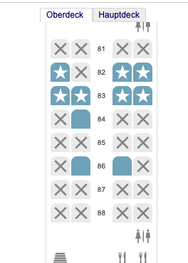 Die First Class Sitze wurden inzwischen geblockt und es ist nicht klar ob man die Sitze auf diesen Flügen frei lassen will oder erst beim Check-In an SEN/HON vergeben wird. Aktuell sind als bevorzugte Sitzplätze die ersten Reihen der Business Class im Oberdeck vorgesehen.
