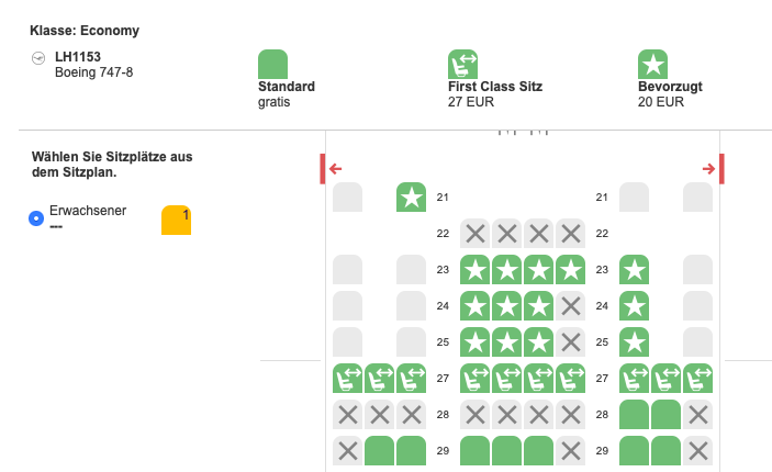 Auch dies wurde nun geändert und Lufthansa hat die Premium Economy Class Sitze nun als Economy Class Sitze mit erhöhten Komfort gekennzeichnet, womit sie Senatoren und HON Circle Membern kostenlos zur Verfügung stehen und auch gegen Zuzahlung von 20 Euro pro Strecke von allen anderen Passagieren reserviert werden können.