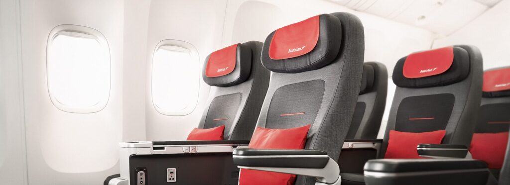 Auch mit einem Economy-Class-Ticket kann man hier deutlich mehr Komfort genießen, denn an Bord der Austrian Boeing 777-200ER befindet sich auf diesen Flügen auch die Premium Economy Class, die man mit einem normalen Economy-Class-Ticket nutzen kann. Senatoren und HON Circle Member dürfen die Sitze sogar kostenlos vorab reservieren. Wer dieses Upgrade ohne Status buchen möchte, muss dafür 20 Euro bezahlen, was sich durchaus lohnen kann.