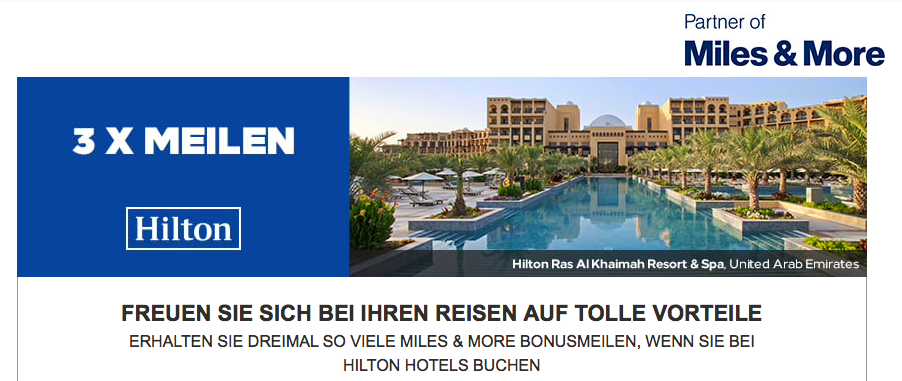Normalerweis sammelt Ihr eine Miles&More Meile je ausgegebenem US Dollar bei Euren Hilton Aufenthalten. Bis zum 30. November 2017 sammelt Ihr allerdings sogar drei Meilen je Dollar. Hierfür müsst Ihr Euch einmalig registrieren.
