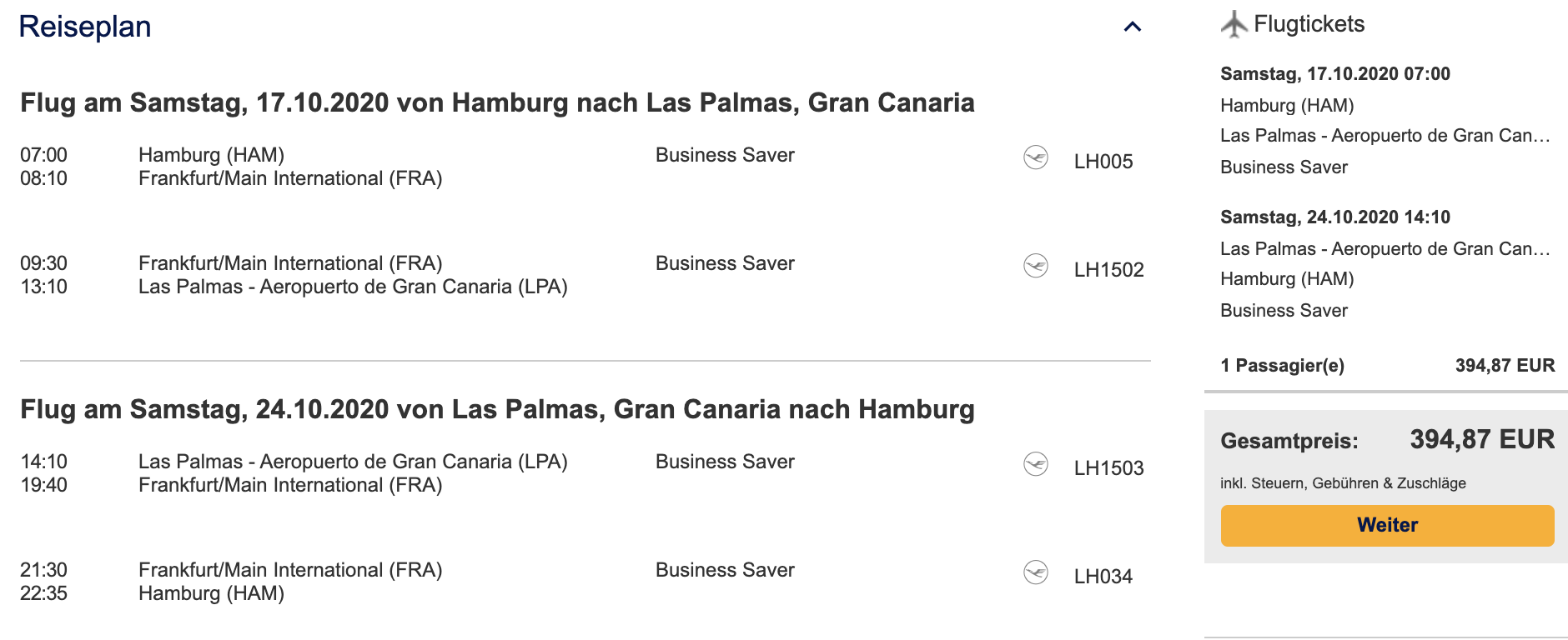 Ähnliche Preise lassen sich auch von Hamburg oder Düsseldorf finden. Eine gute Übersicht könnt Ihr Euch auf Google Flights machen. Ab Anfang Oktober, noch bevor der Winterflugplan offiziell startet, fliegt auch Lufthansa ab Frankfurt nach Teneriffa und Gran Canaria. Die Direktflüge sind teilweise ab 349€ buchbar.