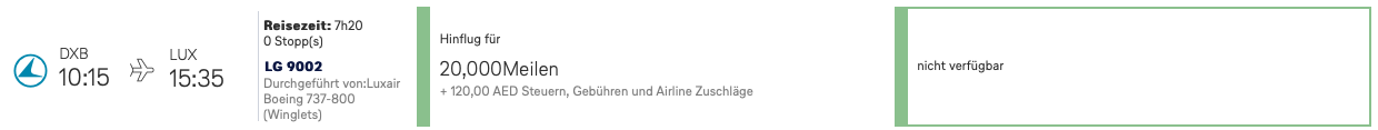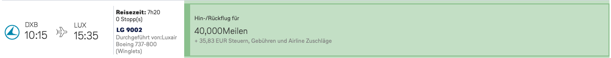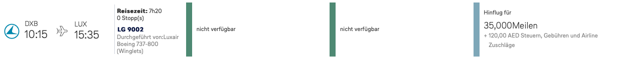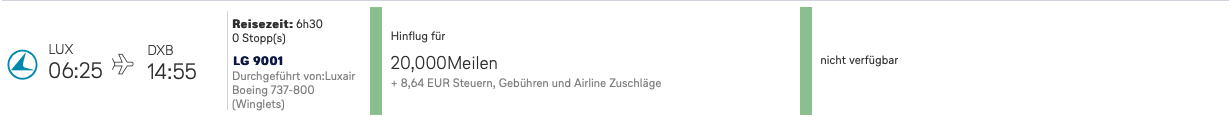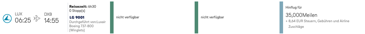 4. Man kann die Flüge Lux-Dxb in Eco teilweise ab ~350€ buchen. Warum sollte ich 40k Meilen ausgeben für sowas?