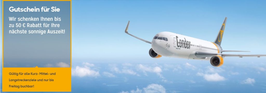 Neue Condor Fluggutscheine ohne Mindestbuchungswert: 50 Euro Rabatt auf Langstrecke und 20 Euro für Kurzstrecke | Frankfurtflyer Kommentar