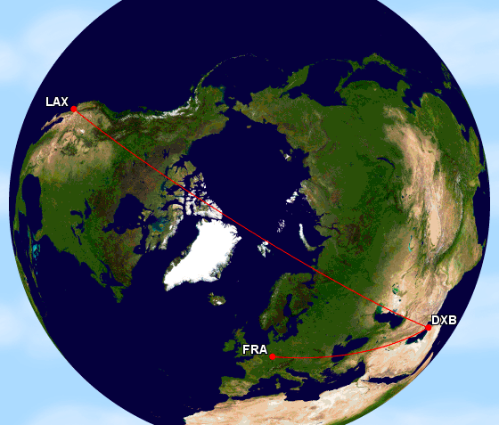 - Dubai nach Los Angeles in der Emirates First Class im Airbus A380 mit 16 Stunden Flugzeit