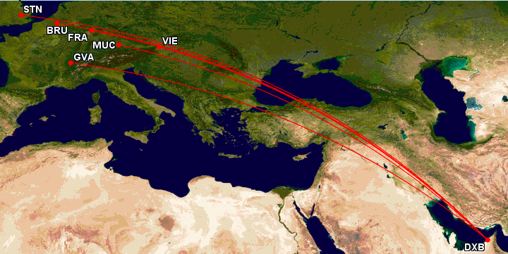 Neben Wien, findet man die neue Emirates Boeing 777-300er auch noch auf Flügen nach Genf, Brüssel, München, Frankfurt und London Stansted.