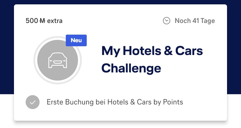 - Aktiviert die „My Hotels & Cars“ Challange in der Miles & More App (soweit Ihr zur Teilnahme berechtigt seid)