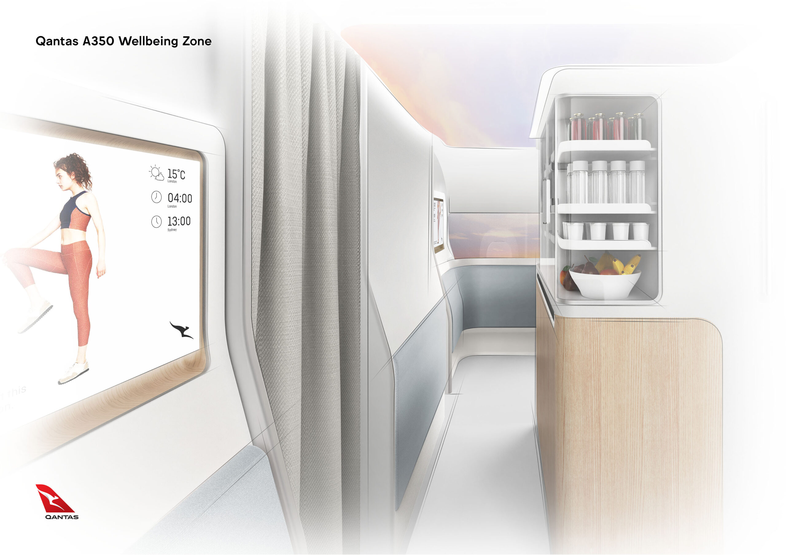 Spielereien, wie das angefachte Fitnessstudio oder Betten im Frachtraum für die Economy Class wird es nicht geben, lediglich eine Wellbeing Zone wird es im Airbus A350-1000 geben, in welcher sich die Passagiere der Economy Class und Premium Economy Class die Beine vertreten können.