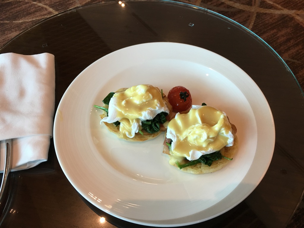 Im Private Room haben wir unsere etwa 90 Minuten Wartezeit zum Abflug bei einem schönen Frühstück mit Eggs Benedict und Dom Perignon genossen.