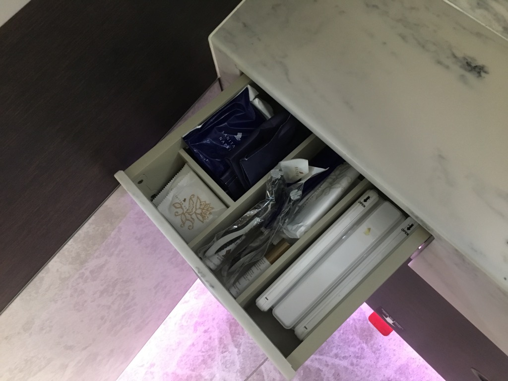 Wenn man an der neuen Singapore Airlines Suite einen Kritikpunkt finden will, dann kann man hier leider anbringen, dass man trotz des geringen Alters des Flugzeuges bereits eine Reihe von Abnutzungserscheinung sehen konnte. Auch wurde hier offensichtlich schon mehrfach etwas Repariert, was grundsätzlich nicht schlimm ist, aber es stört ein wenig das Bild des sonst extrem Hochwertigen Sitzplatzes.