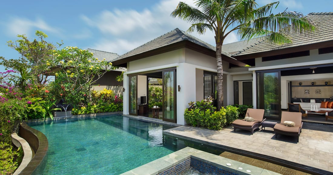 Das Hilton LXR Bali ist ein reines Villen Hotel, wobei selbst das kleinste „Zimmer“ bereits eine Villa mit 403 Quadratmetern und einem 10 Meter Pool sein wird, welche sich an den Klippen der Südküste von Bali befinden. Dabei sollte man die Angabe von 403 Quadratmeter nicht als 403 Quadratmeter Wohnfläche verstehen, denn im Allgemeinen sind hiermit sowohl die eigentliche Villa und auch der Freiluftraum, inkl. Pool gemeint.
