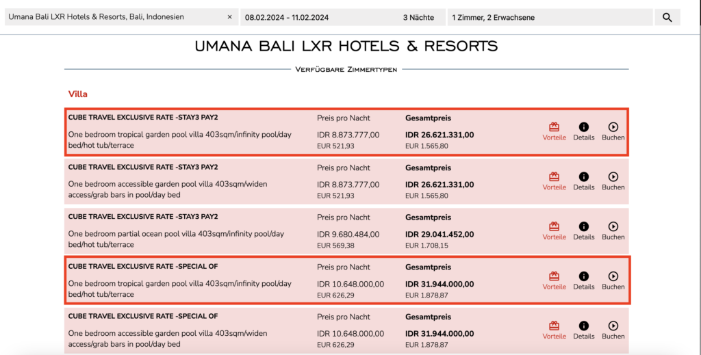 Die besonderen Angebote durch das Hilton Impresario Programm, wie diese im LXR Bali, kann man nur über ausgewählte Travel Advisor wie Frankfurtflyer buchen. Dabei sind diese nicht öffentlich verfügbar, aber in unserem neuen Frankfurtflyer Hotel Portal könnt Ihr diese Angebote nach vorheriger Anmeldung finden.