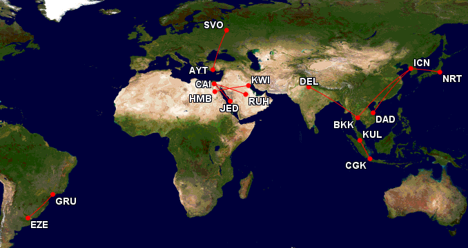 Den Siegerplatz muss sich ICN-DAD-ICN allerdings mit einem anderen „City-Pair“ teilen, den Flug zwischen Kairo und Dschidda haben derzeit ebenfalls neun Fluggesellschaften in ihrem Flugplan! In Sachen Frequenz und Sitzplatzangebot geht es bei der Route CIA-JED bzw. JED-CAI aber um ganz andere Dimensionen, in einem Jahr wurden hier weit über 3 Millionen Sitze angeboten, zwischen Korea und Vietnam waren es lediglich 350.000 – also lediglich ein Bruchteil.