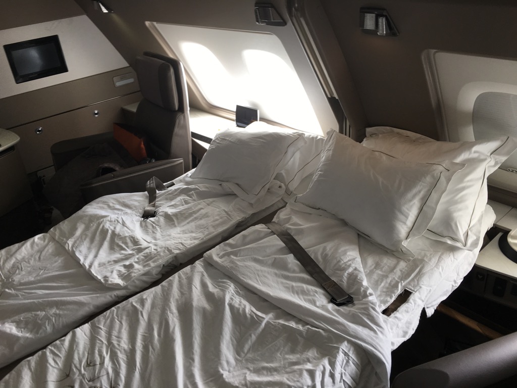 Aber auch in der Business Class hat man einen neuen Sitz eingeführt, welcher zwar nicht mehr so extrem breit ist, wie die älteren Business Class Sitze, dafür muss er zum Schlafen nicht mehr den Sitz umbauen und auch die neue Business Class von Singapore Airlines hat extrem gute Reviews bekommen.