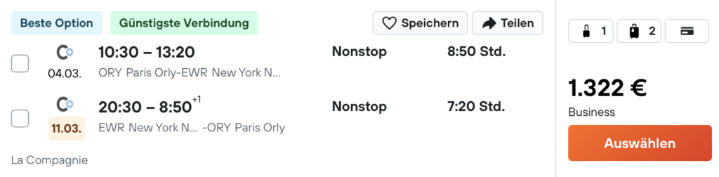 La Compagnie fliegt leider nur ab Paris Orly und Mailand Malpensa non- stop nach New York/Newark, aber sowohl Paris, als auch Mailand sind ab Deutschland, Österreich und der Schweiz recht einfach und günstig zu erreichen. Gerade bei Paris lohnt sich aber auch durchaus ein Blick hin zu einem Zug und aus vielen Teilen von Deutschland ist man in 2-3 Stunden in Paris.