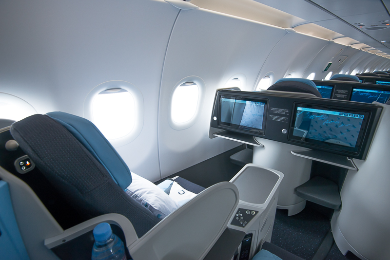 La Compagnie bietet ein reines Business Class Produkt in Airbus A321neo an. Hierbei hat man eine Kabine mit 76 full Flat Sitzen in einer bequemen 2-2 Bestuhlung. Gerade für Paare ist dies sicherlich sehr angenehm, da man so dennoch zusammen reisen kann und sich während des Fluges problemlos unterhalten kann.