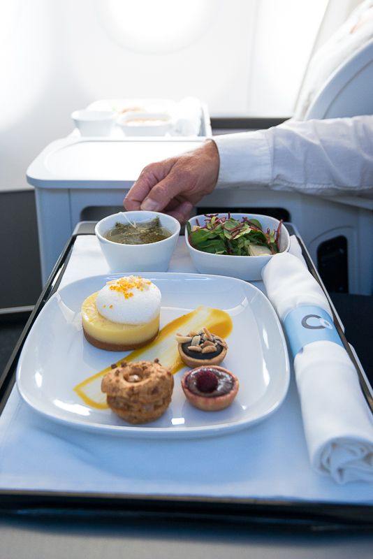 Der Service bei La Compagnie ist, wie man es in der Business Class erwartet und man bekommt ein mehrgängiges Menü serviert, inklusive kostenloser alkoholischer Getränke wie Spirituosen, Bier, Wein und Champagner.