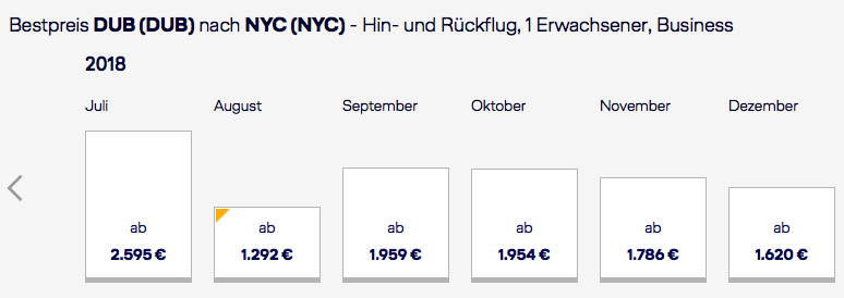 Folgende Preise habe ich direkt bei Lufthansa ermittelt. Abflug war immer Dublin.