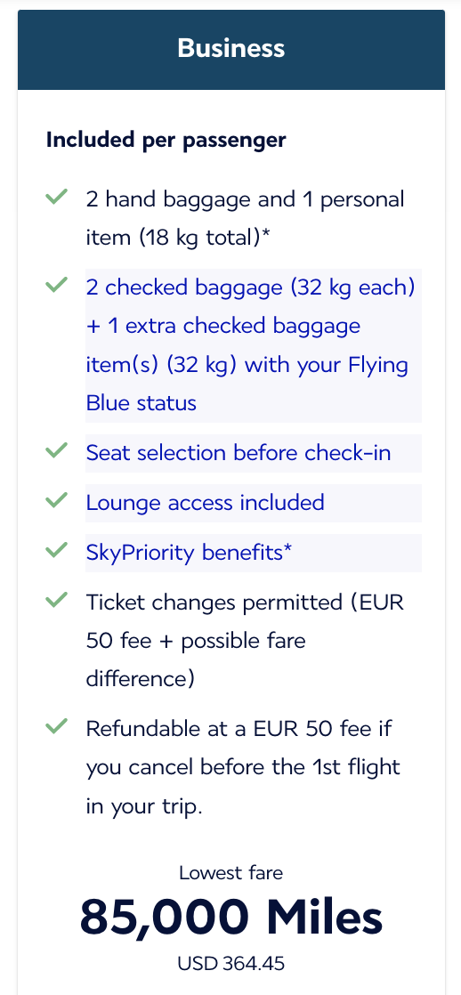 Flying Blue Promo Awards | Konditionen