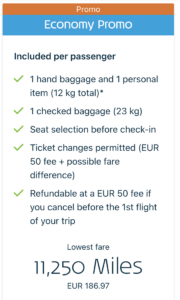 Für Promo-Prämien-Flugtickets gelten die allgemeinen Beförderungsbedingungen der jeweiligen Fluggesellschaft. Promo-Prämien-Flugtickets sind für Einzelflüge sowie für Hin- und Rückflüge erhältlich, die mit Meilen bezahlt werden.(Promo-Prämien-Flugtickets können nicht im Rahmen des Miles & Cash-Programms erworben werden). Promo-Prämien-Flugtickets werden nach Verfügbarkeit vergeben.