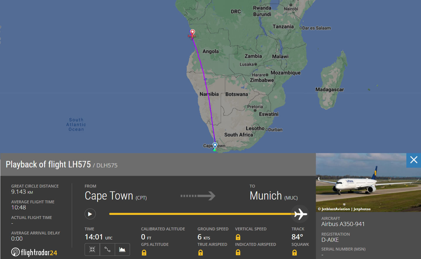Wie das Fachportal Aviation Herald am Sonntag (4. Dezember 2022) berichtete, war ein Lufthansa Airbus A350 auf dem Flug LH575 unterwegs von Kapstadt (CPT) zurück nach München (MUC). Nicht viel Zeit verging nach dem Start, als sich die Cockpit-Crew des Flugzeuges mit der Registrierung D-AIXE dazu entschied, von Flightlevel 380 auf FL340 zu sinken. Die Crew meldete Probleme mit dem linken Triebwerk. Während laut Lufthansa das Problem in „technischen Unregelmäßigkeiten in einer Triebwerksanzeige“ bestand, berichten andere Medien, wie es in einem n-tv-Artikel heißt, von Feuer im Triebwerk.
