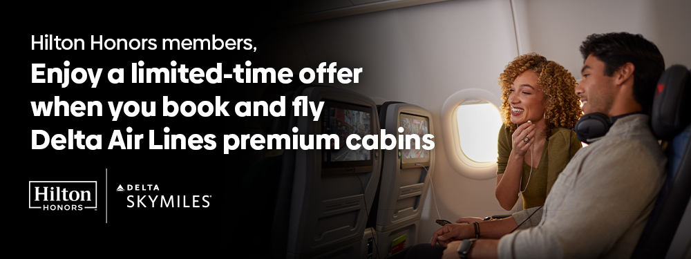 Nun können Passagiere von Delta bis zum 19. September 2024 Meilen sammeln und gleichzeitig bei Hilton punkten. Hilton Honors Mitglieder erhalten nach der Registrierung 1.000 Honors Punkte für jeden Flug in einer Premiumklasse. Dazu zählen Comfort+ und First Class sowie Delta Premium Select und Delta One. Dabei muss es sich um Flüge handeln, die von Delta vermarktet werden (Ticketnummer beginnt mit 006).