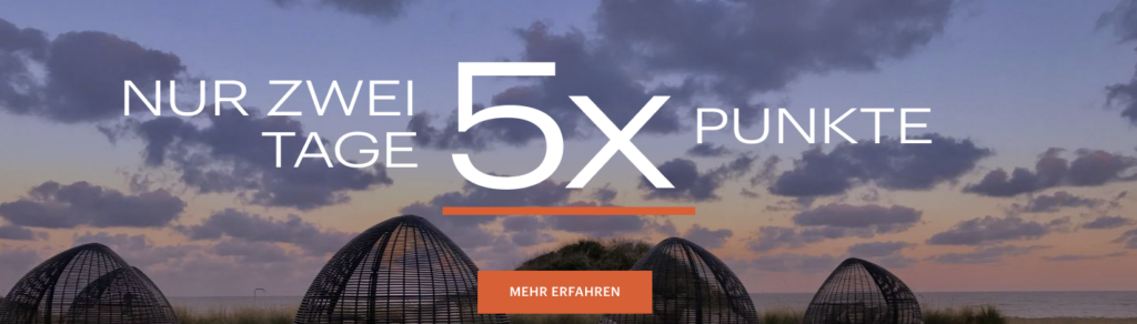 Ja! Fünffachpunkte ohne erforderlichen Mindestaufenthalt! Buchen Sie bis zum 30. November 2021 einen Aufenthalt bis zum 31. Dezember 2021, um statt der Dreifachpunkte Fünffachpunkte zu sammeln. Und wenn Sie bereits für Dreifachpunkte angemeldet sind, sind Sie startklar.