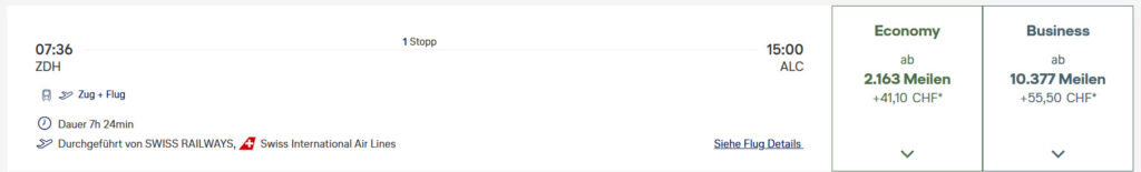 Ich checkte mit dieser Erkenntnis zunächst, ob auf meinem Rückflug von Alicante nach Zürich zufällig vier Awards in der Business Class frei sind und wurde nicht enttäuscht. Auf meiner ursprünglich gebuchten Flugroute wurden sogar nur etwas mehr als 10.000 Prämienmeilen für einen Erwachsenen fällig. Dank Companion Award durch den Senator Status kostete die zweite Person nur 50% der Meilen. Die Kinder fliegen sowieso immer etwas günstiger und zahlten jeweils 8.200 Meilen, so dass wir am Ende des Tages für 32.000 Meilen und 160 Euro Zuzahlung mit vier Personen in der Airbus A340 Business Class von Spanien nach Zürich fliegen konnten.