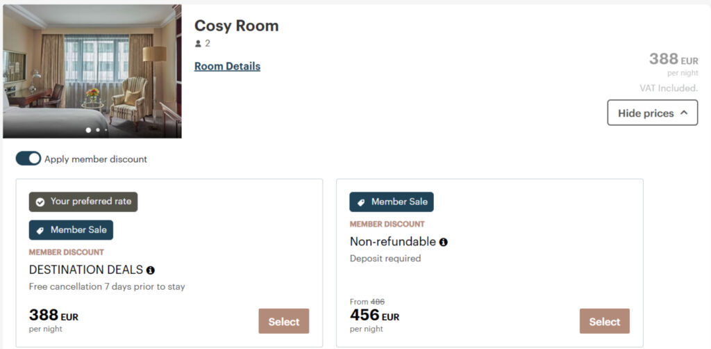 2. Vergewissert Euch, dass die Rate „Destination Deals“ verfügbar ist und bucht Eure Zimmer mit dieser Rate.