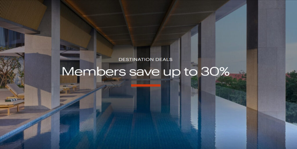 • 30% Rabatt in teilnehmenden Hotels & Resorts in Europa, Indien, Mittlerer Osten, Afrika, Ostasien, Pazifik und China