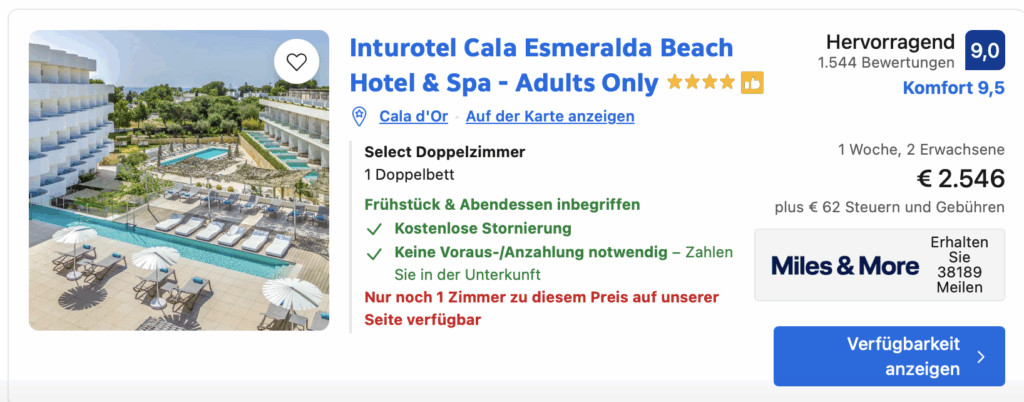 Hier könnt Ihr Hotels bei Booking.com mit 15- Fach Miles&More Meilen buchen