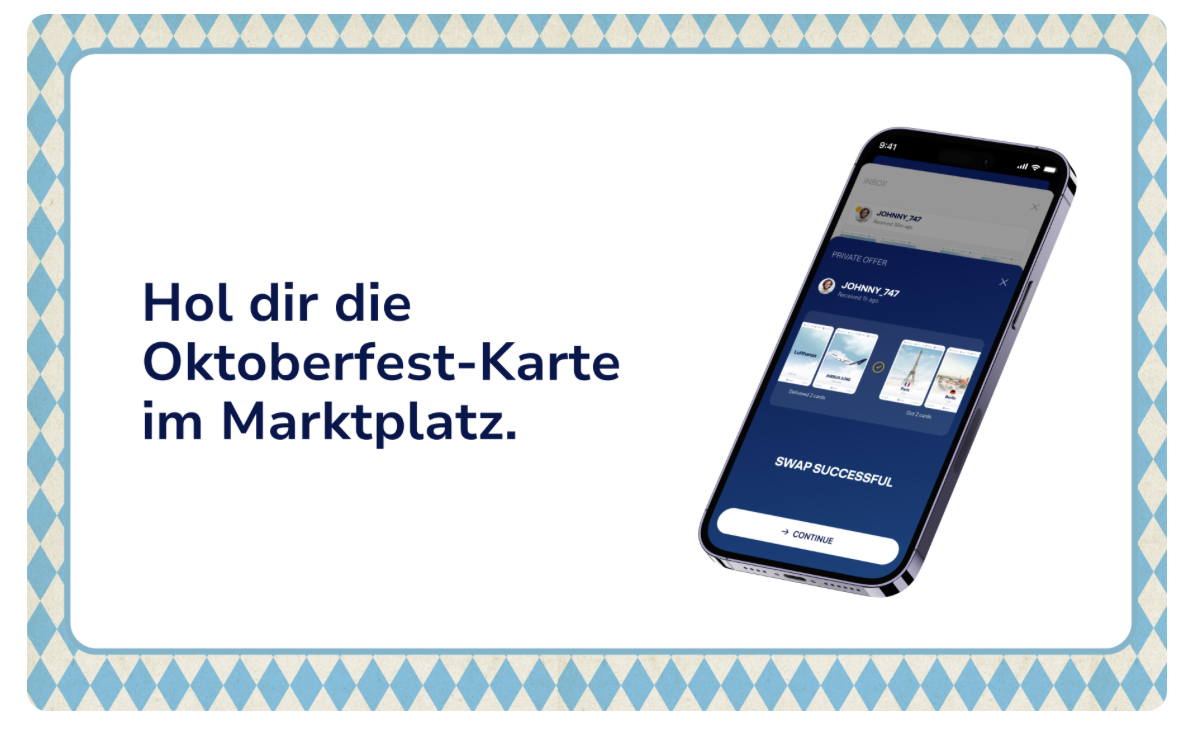 Uptrip wird dieses Jahr auf dem Oktoberfest sein und lädt auch andere Wiesn-Fans ein. Um die dafür notwendigen Sammelkarten zu erhalten, muss man in den nächsten Tagen den Marktplatz im Auge behalten und schnell sein.